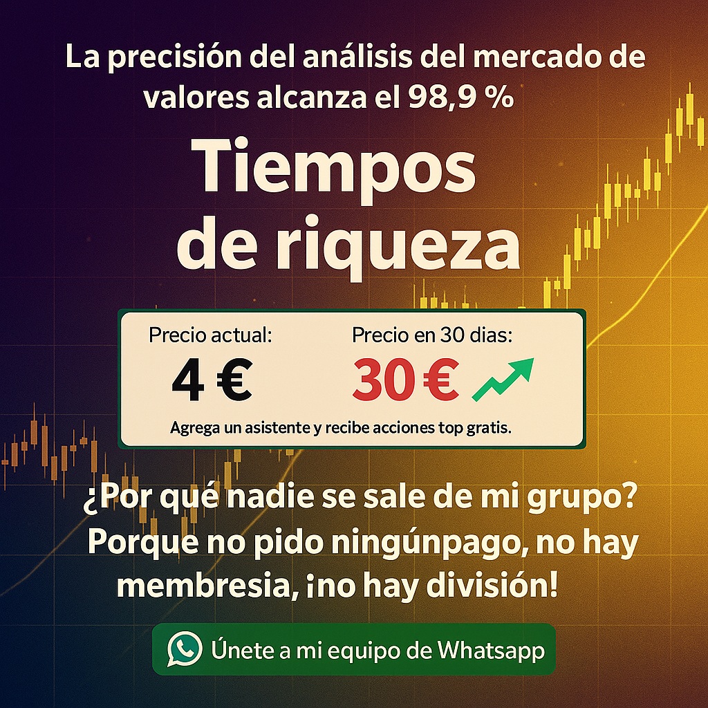 ¡Solo tienes que agregarme gratis en WhatsApp y enviar el número “9”! Así sabrás qué acción subirá mañana 📈 Responde con “99” para desbloquear el acceso a una membresía premium, estable y a largo plazo, para así comenzar una colaboración continua. ✅ Al agregarme en WhatsApp, recibirás gratis información exclusiva sobre acciones populares y recomendaciones con un rendimiento semanal de hasta el 38%.